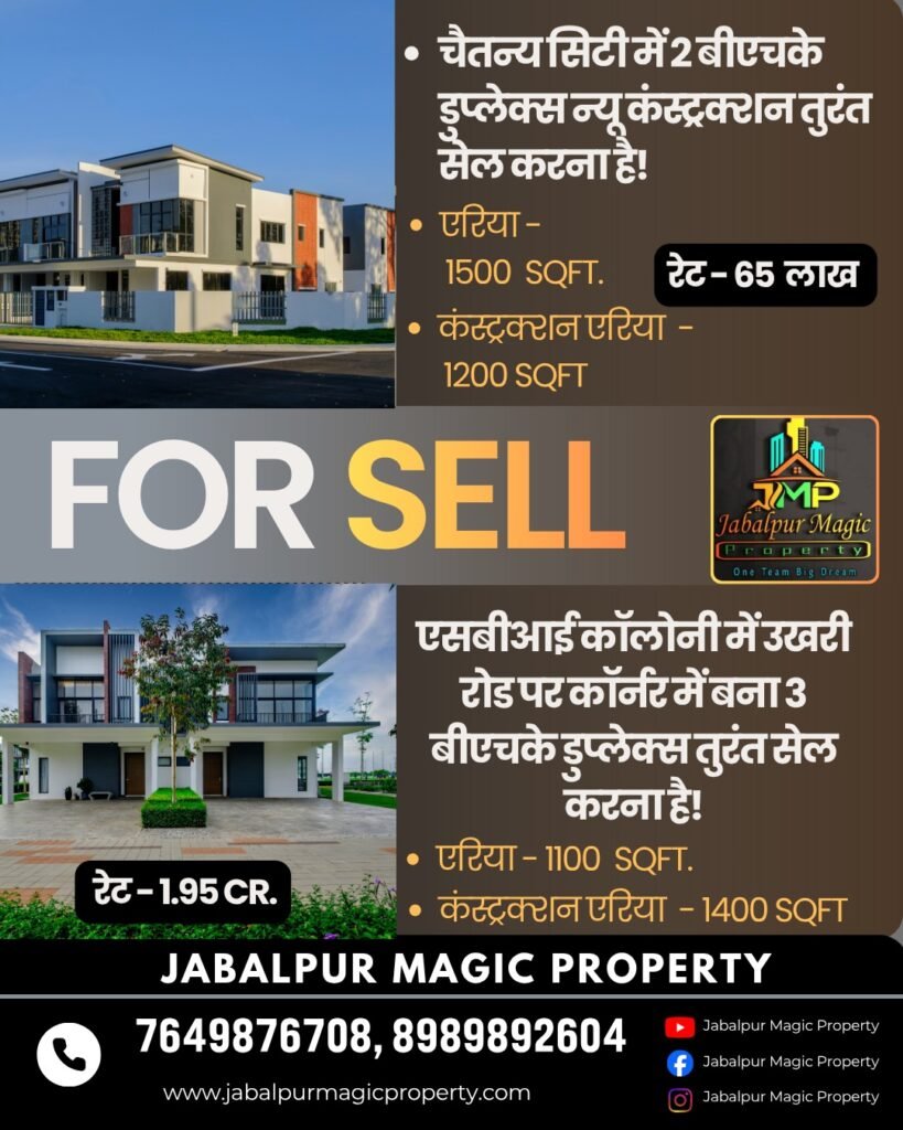 Chaitanya City mein 2BHK East Facing Duplex (65 Lakh) aur Ukhri Road par Corner 3BHK Duplex (1.95 Cr) available. Contact now! +91 7649876708, +91 8989892604.