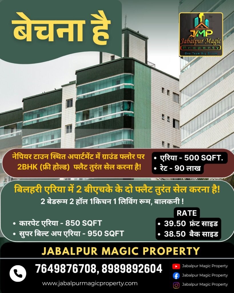 (ii). बिलहरी में, अपार्टमेंट में स्थित, सुपर बिल्ट अप एरिया 950 स्क्वायर फीट ( कारपेट एरिया 850 स्क्वायर फीट) पर बने, 2 BHK के, दो फ्लैट, तुरंत सेल करना है। रेट – a. 39.50 Lakh, b. 38.50 Lakh.